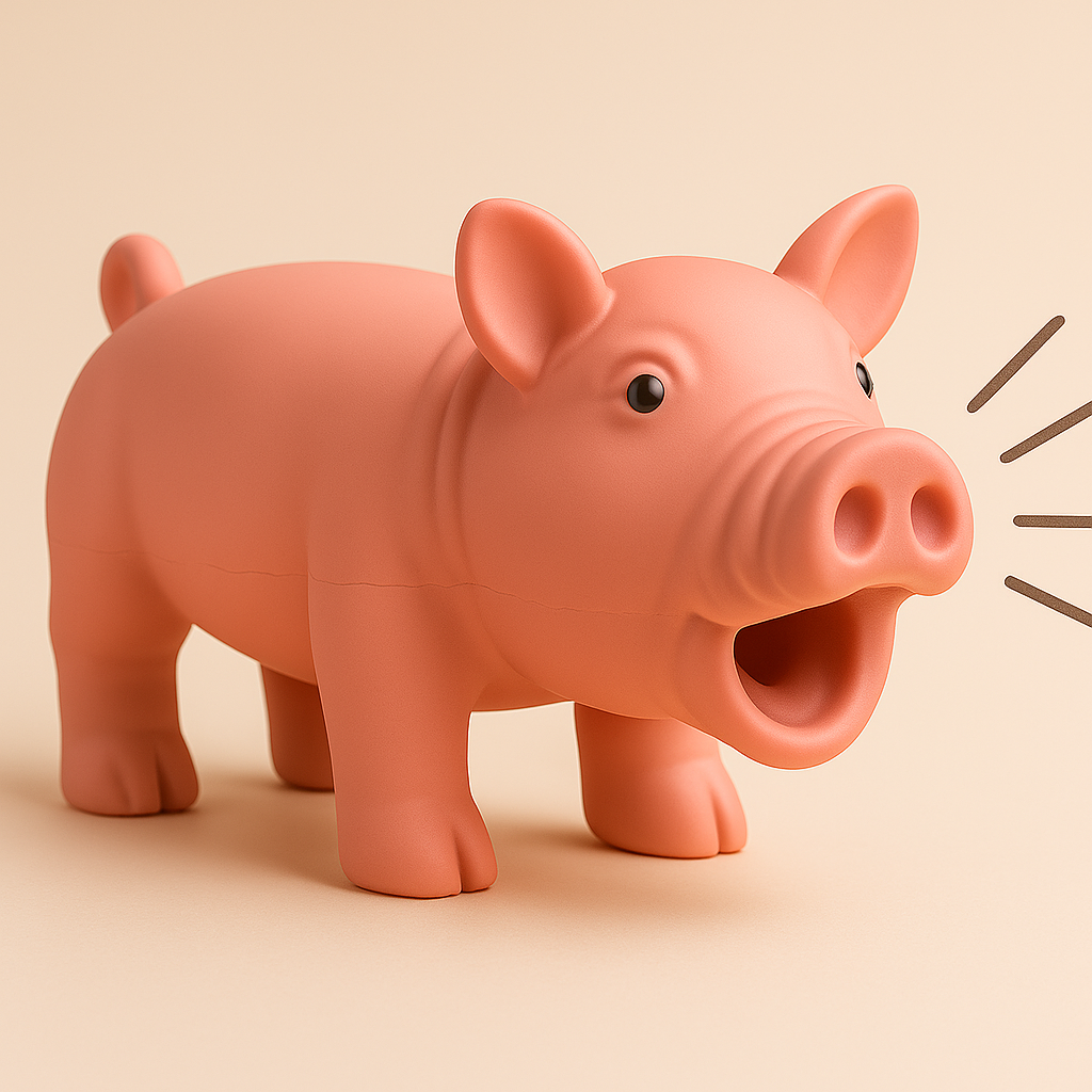 Entdecke Brownys absolutes Lieblingsspielzeug! Unser „Grunz & Spaß“-Quietsch-Schwein gibt bei jedem Drücken ein authentisches Schweinegrunzen von sich – und sorgt damit für Begeisterung pur! Egal ob drinnen oder draußen: Dieses robuste Spielzeug bringt Bewegung, Freude und jede Menge Schweinerei in den Hundealltag.